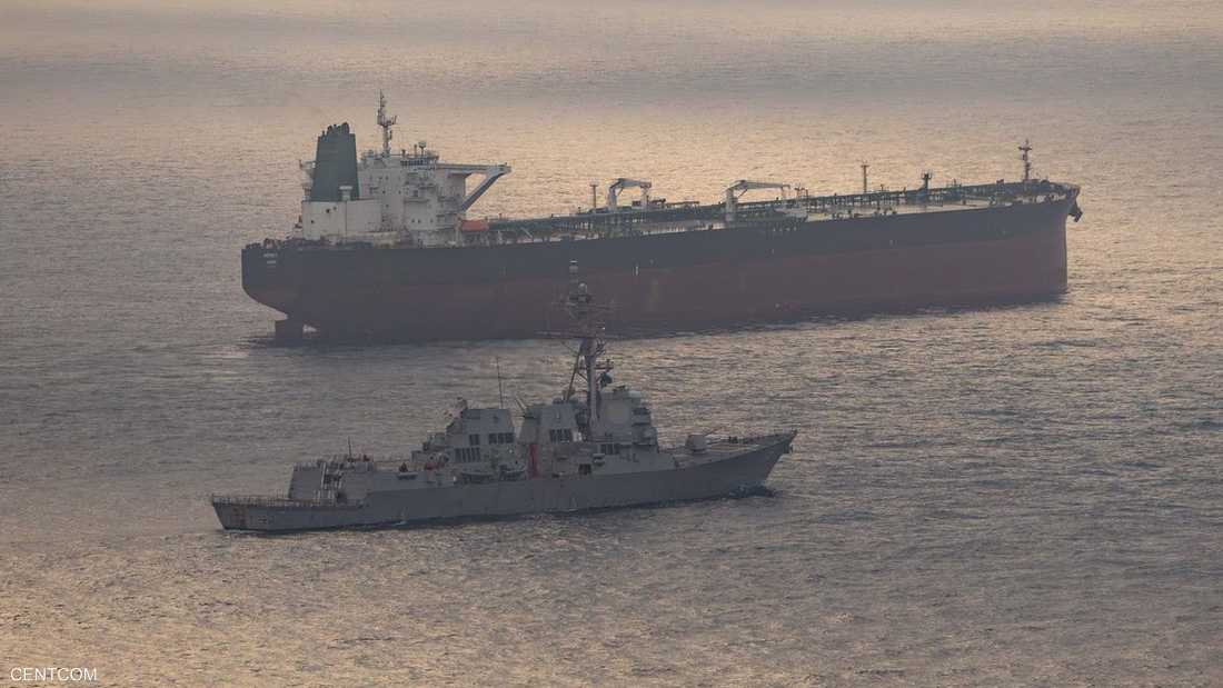 مدمرة أميركية في وجه سفينة إيرانية.. صورة تختصر "الحصار"