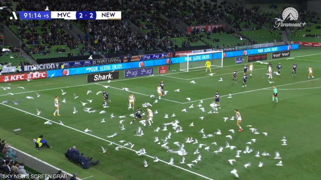 بالفيديو.. أسراب الطيور تغزو مباراة كرة قدم في "مشهد جنوني"