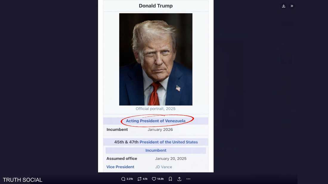أعلن الرئيس الأميركي دونالد ترامب، قبل ساعات قليلة، في منشور له عبر منصة "تروث سوشيال" نفسه حاكما مؤقتا لفنزويلا. Advertisement...