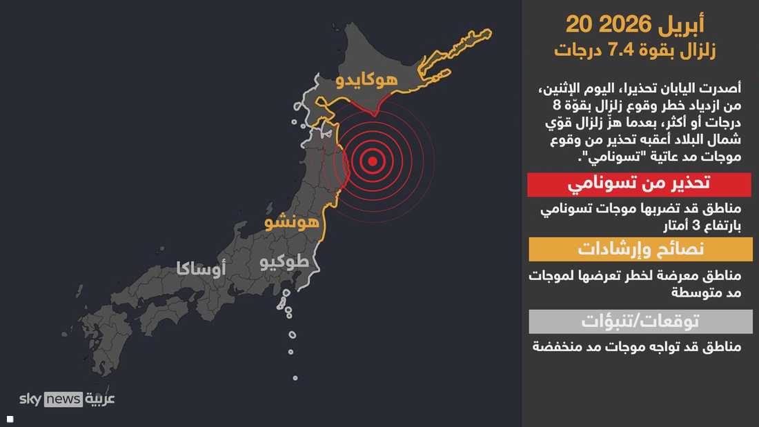 اليابان تصدر تحذيرا من زلزال "هائل" في شمال البلاد