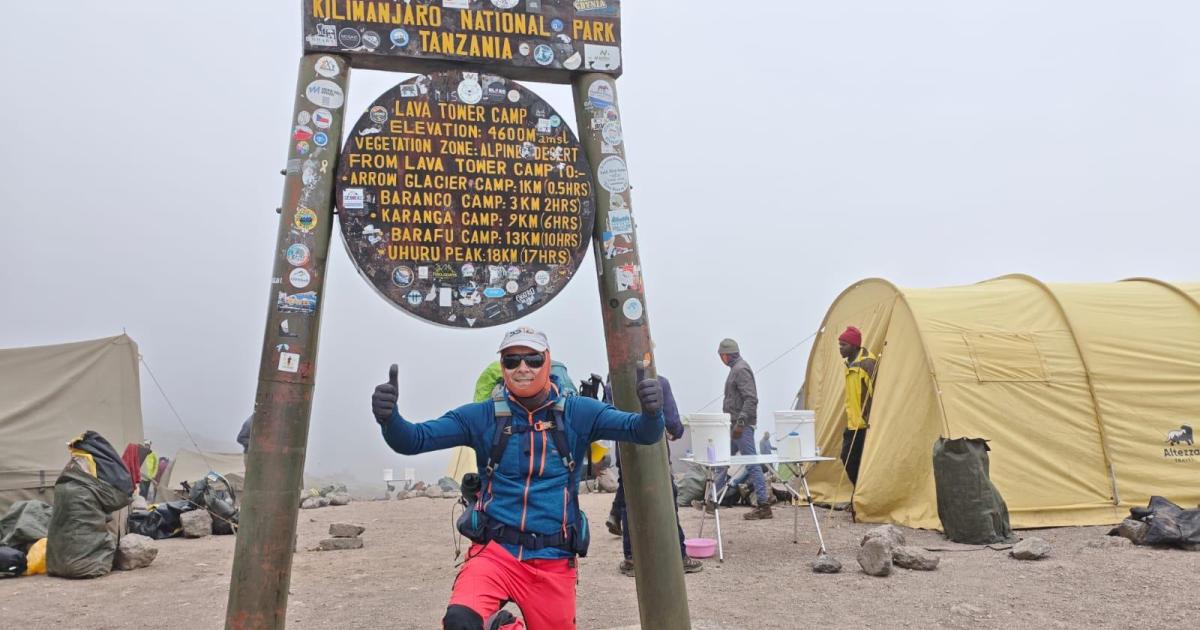 El montañero emboca la ascensión al Kilimanjaro, la primera de las siete cumbres que pretende hollar en otros tantos continentes...
