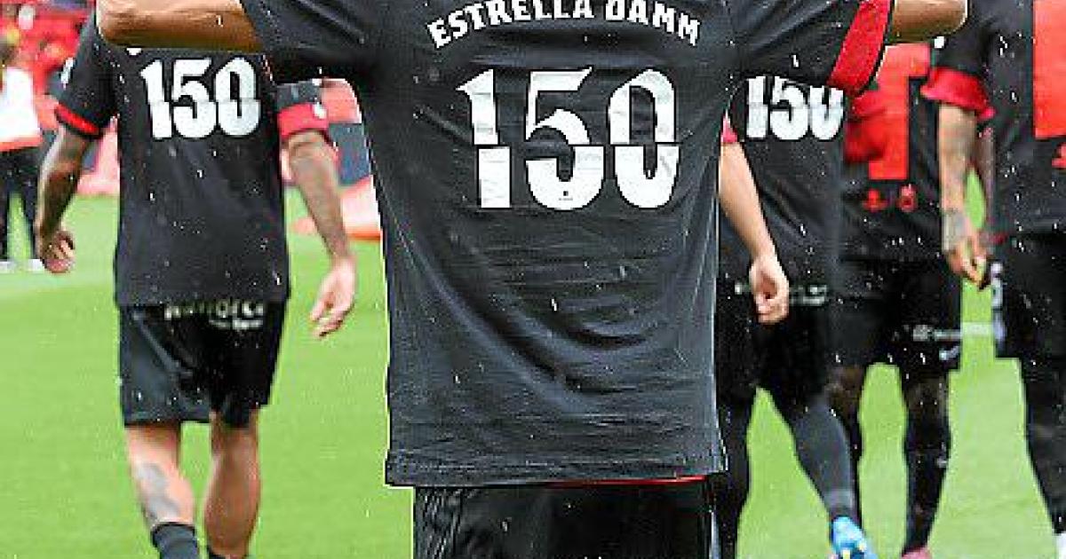 Los jugadores del primer equipo lucen una camiseta especial en Son Moix con un mensaje de felicitación a la empresa cervecera, patrocinadora del club desde hace más de 20 años...