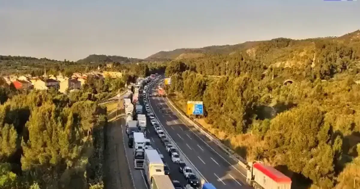 Un camión volcado corta la AP-7 en Santa Oliva (Tarragona) en sentido Barcelona