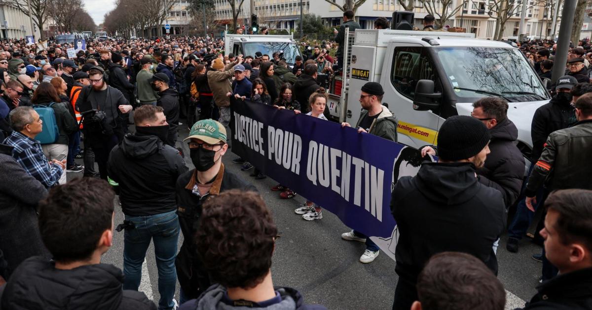 Algunas personas repartían pegatinas con la imagen del joven muerto en las que se podía leer «Quentin, asesinado por la milicia de (Jean-Luc) Mélenchon»...