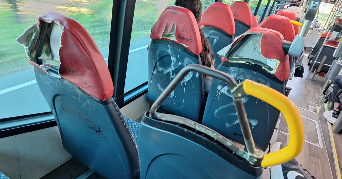 Usuarios denuncian el maltrato a los asientos, con pintadas, respaldos rotos o rasgados intencionadamente y arrancándose algunas de sus partes...