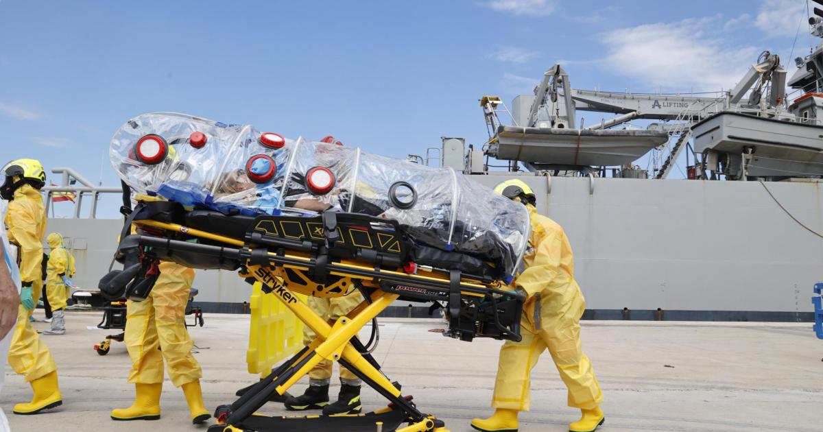 Más de 20 organizaciones colaboran con la Armada para atender un supuesto caso de virus Marburg en alta mar...