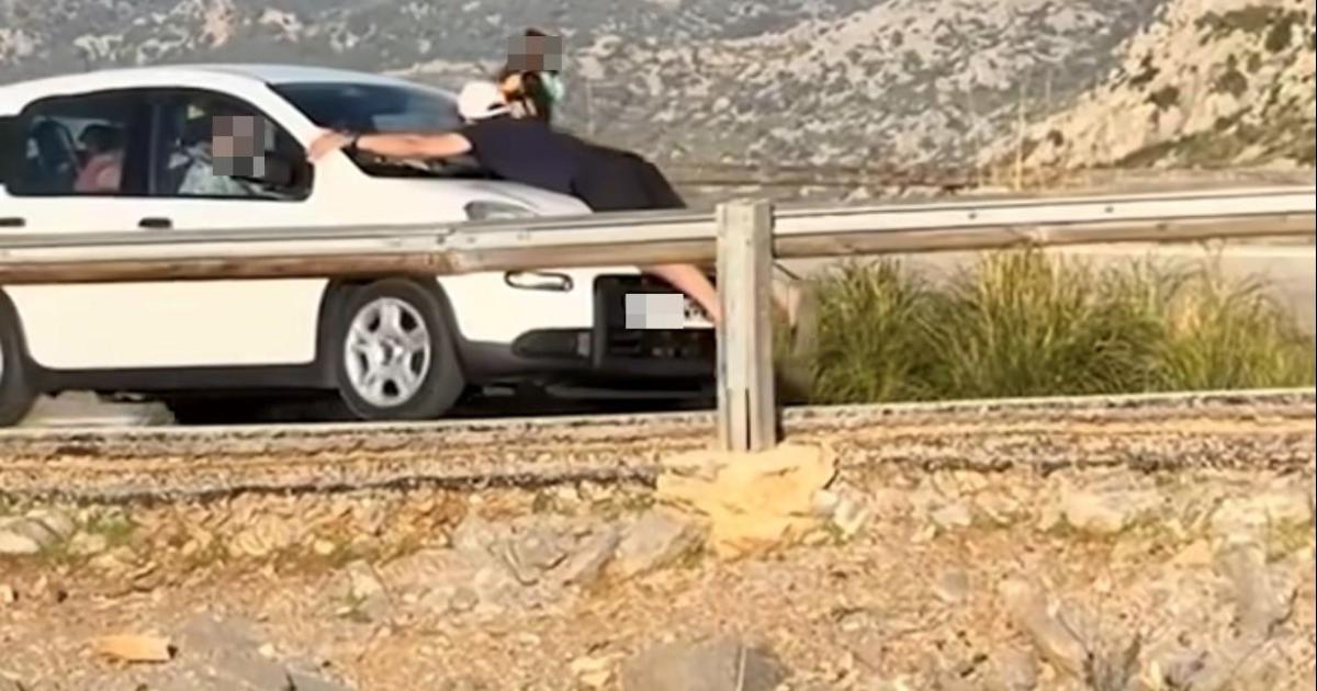 Un hombre circula tumbado sobre el capó de un coche en plena Serra de Tramuntana