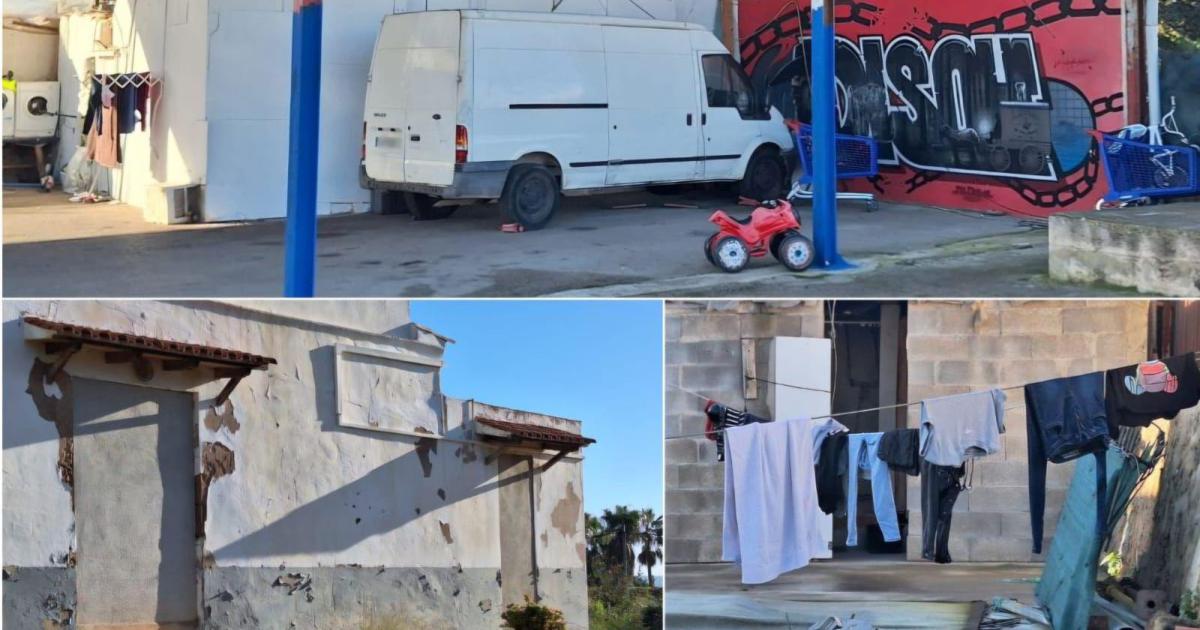 La presencia de personas e incluso familias instaladas en fincas sin uso e incluso en viejos espacios industriales también forma parte del paisaje que rodea a Son Sant Joan...