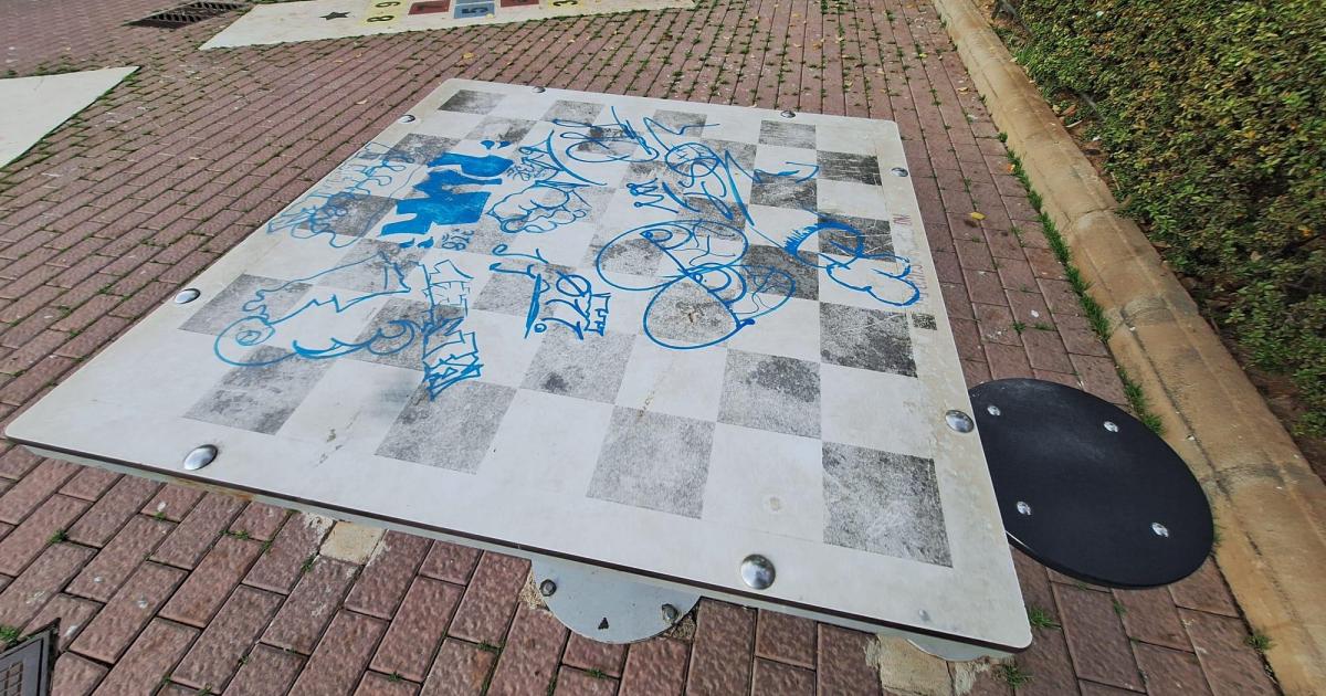 Un residente de la plaza Fleming traslada los actos de vandalismo contra espacios como la mesa de ajedrez ubicada junto a la zona de juegos...