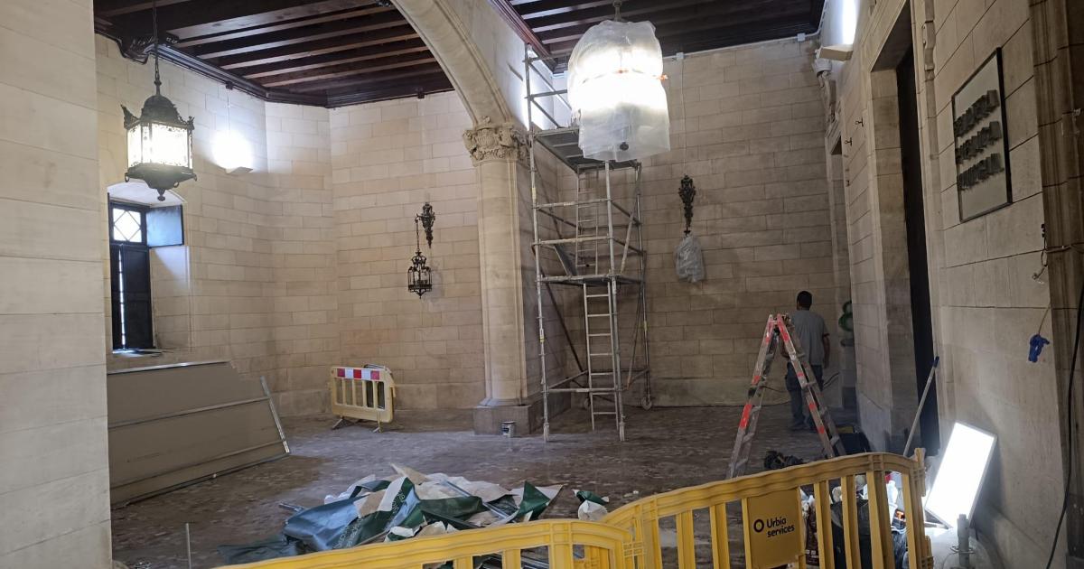 Ayer se retiraron casi todos los andamios tras limpiar las paredes y el artesonado...