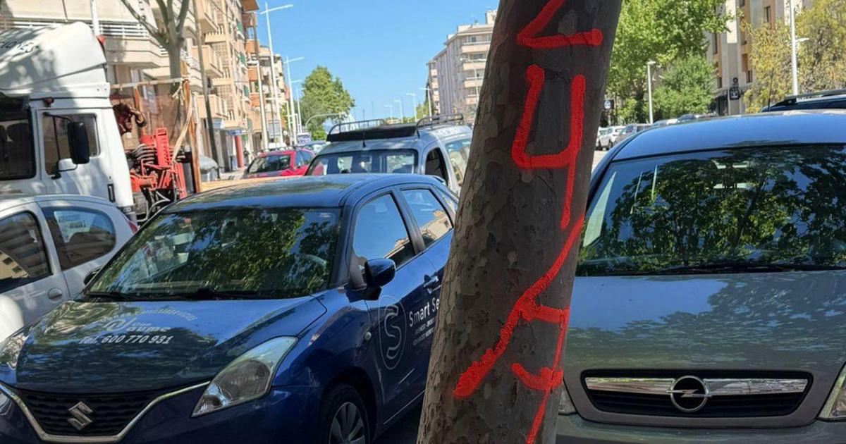 Pintadas y vandalismo contra el arbolado y mobiliario público en la calle Eusebi Estada