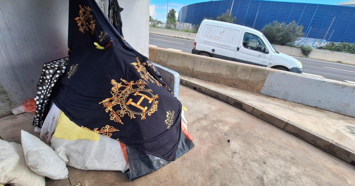 La vida a un metro de la autovía: vuelve un asentamiento bajo el puente del Estadi Balear