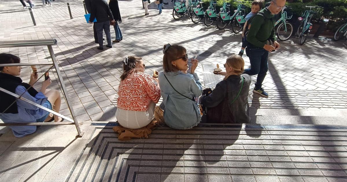 Carteles y vigilancia para ahuyentar a turistas que se sientan en cualquier rincón a comer helado