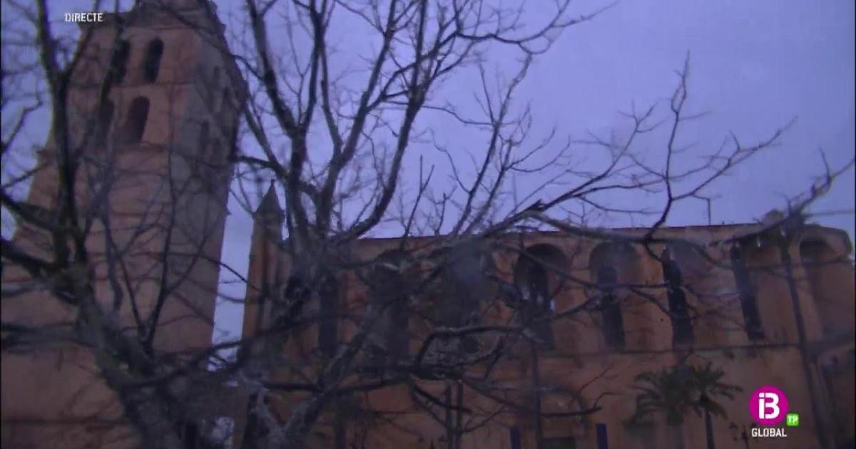 Pasadas las cinco de la tarde, y con lluvia, ha comenzado el traslado del pi de 21 metros hasta la plaça Vella...
