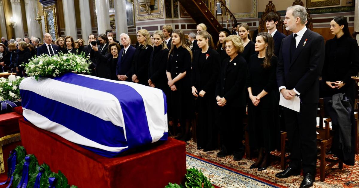 La Familia Real, sin Juan Carlos I, da su último adiós a Irene de Grecia