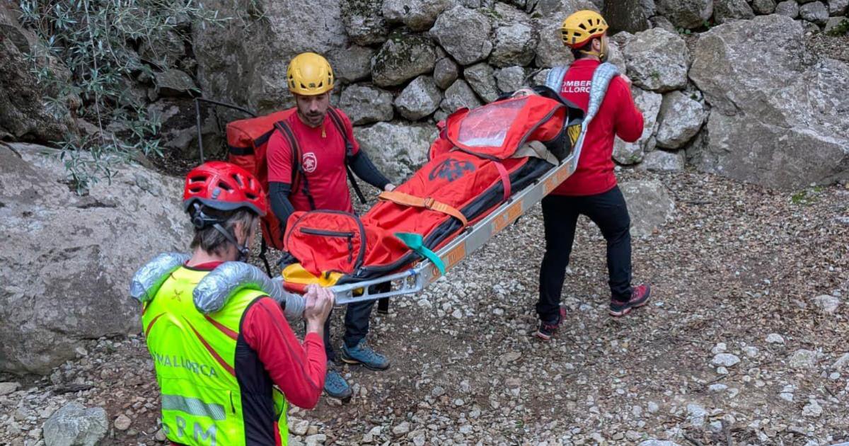 Los Bomberos evacúan a un hombre de unos 70 años tras caerse en el barranco de Biniaraix