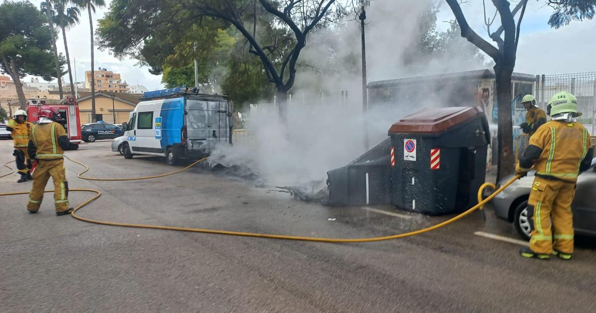 Buscan al autor de un fuego intencionado que calcinó cinco contenedores y dañó dos furgonetas en Palma