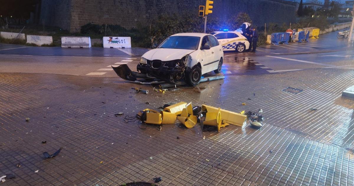 Un conductor pierde el control en Avenidas por el asfalto mojado y arranca de cuajo un semáforo