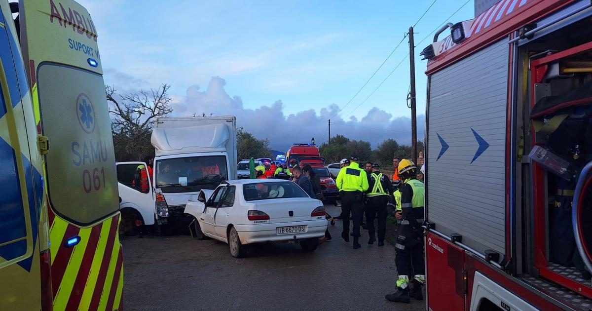 Tres heridos en un choque frontal entre un camión y un coche en el Camí de sa Torre