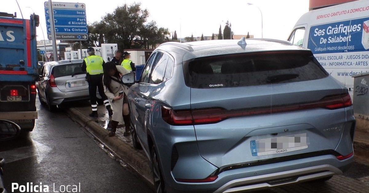 Interceptan a un conductor ebrio y sin carné tras sufrir un accidente al intentar adelantar a una hilera de coches en Palma