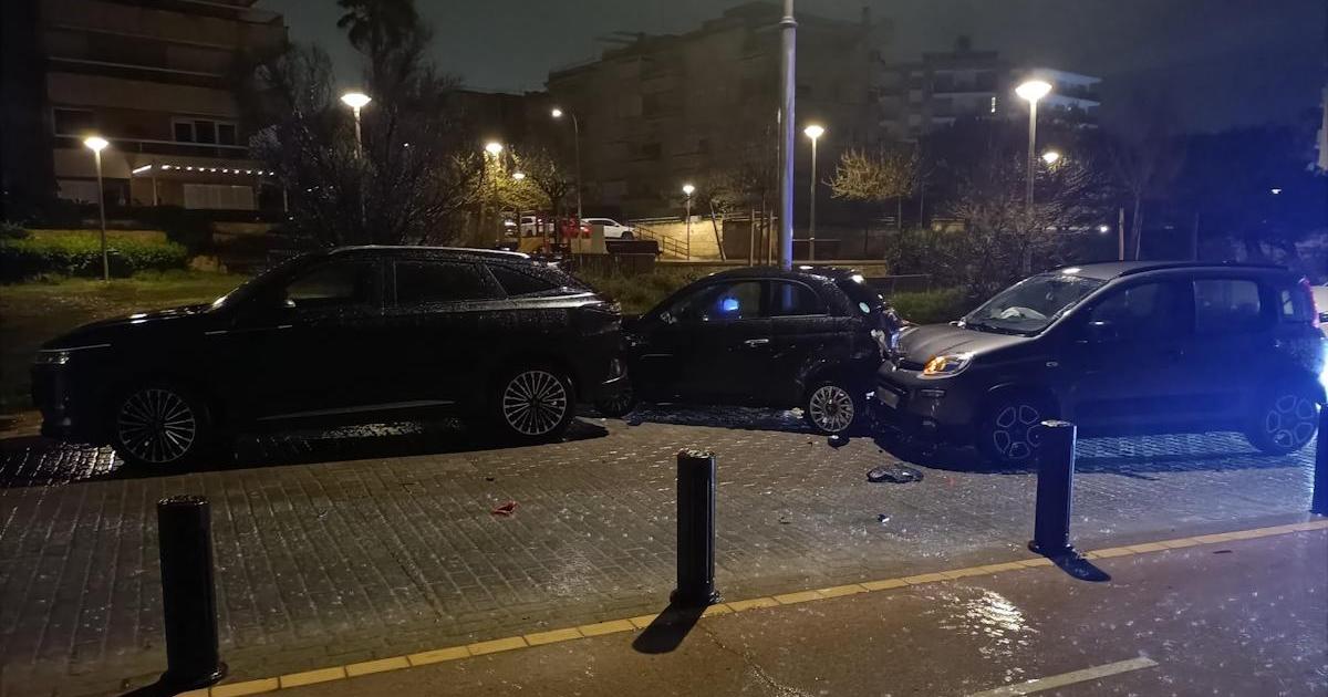 Una conductora ebria provoca un aparatoso accidente en Palma que acaba con tres coches dañados