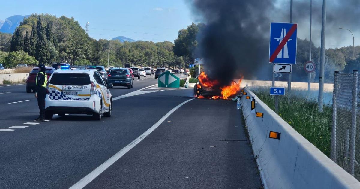 El incendio en un coche en la autopista de Inca provoca un gran atasco