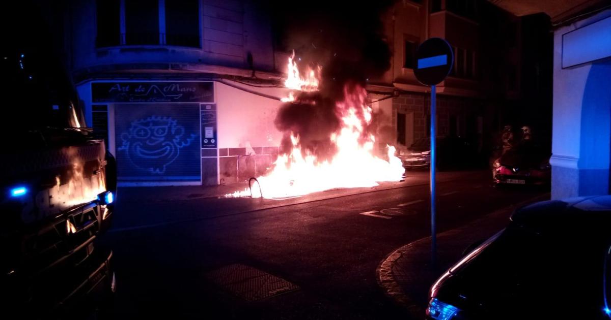 Un incendio calcina tres contenedores y daña un coche y el tendido eléctrico en el barrio de Bons Aires