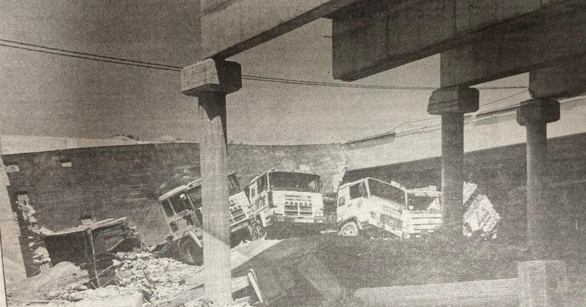 El día que uno de los puentes principales de la vía de cintura se hundió con cinco camiones encima