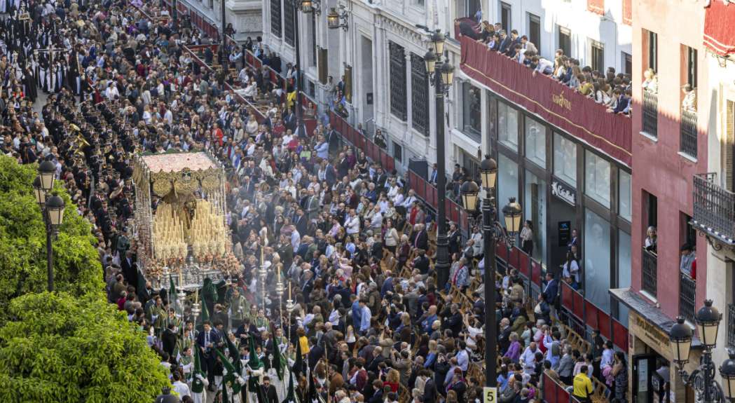 Pasar de la piscina del hotel a vivir la Semana Santa de Sevilla desde un balcón privado frente a la catedral