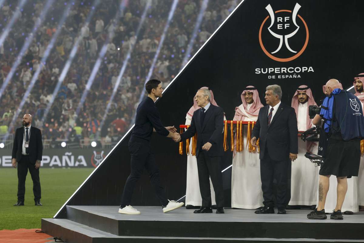 Florentino Pérez abraza Xabi tras la derrota y no lo echará todavía