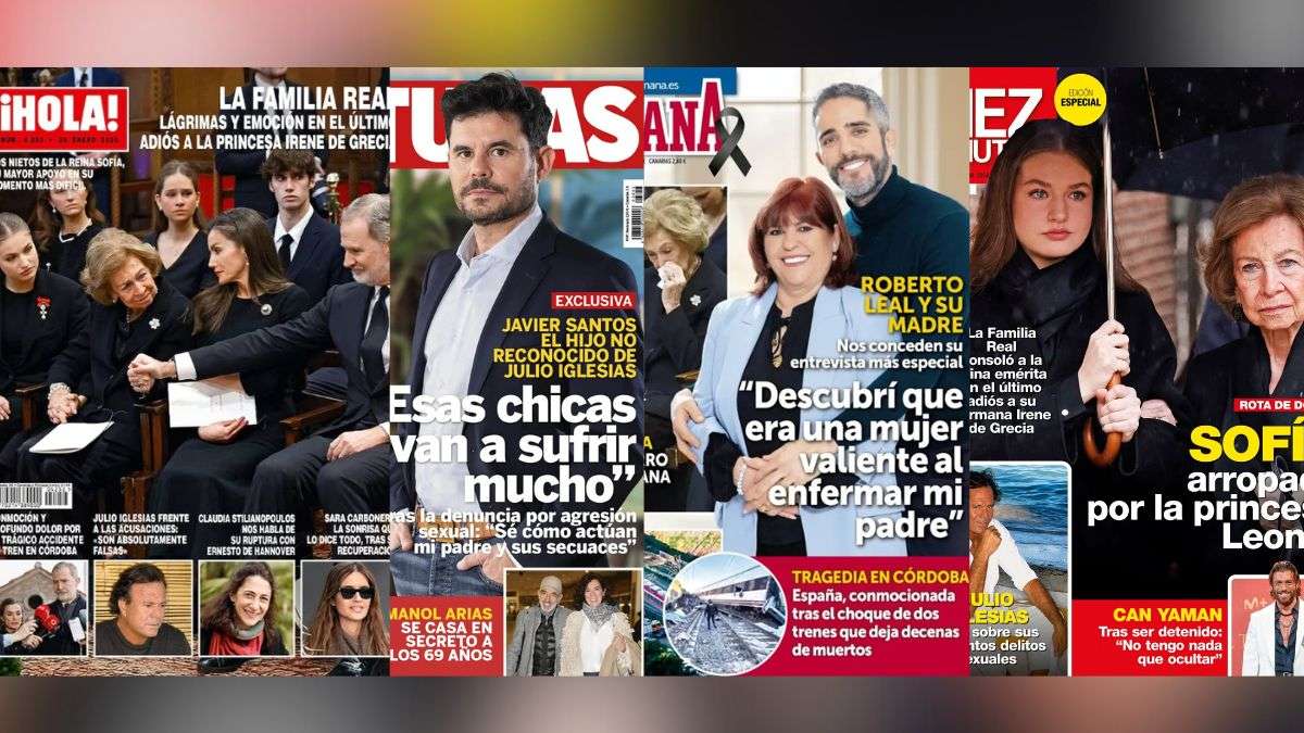 El adiós a Irene de Grecia, la boda secreta de Imanol Arias, Roberto Leal y su madre y la tragedia de los trenes en Córdoba, son protagonistas de las portadas...