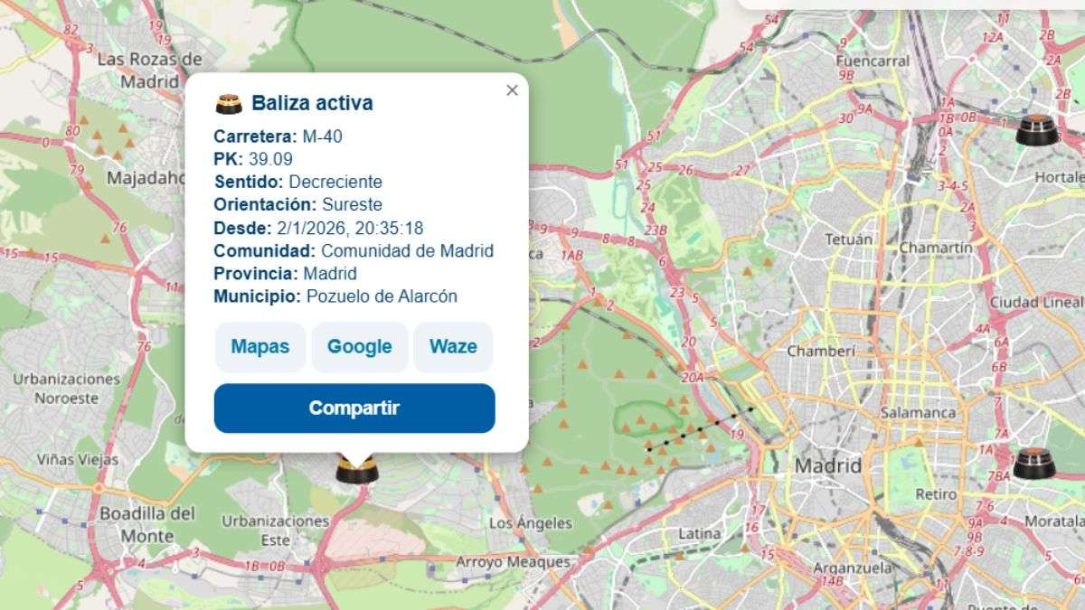 El mapa de las balizas V16 en tiempo real: consulta dónde están activas en España