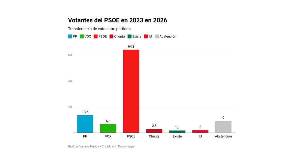 Casi un 13% del voto del PSOE en Aragón se va al PP y un 7% a Vox