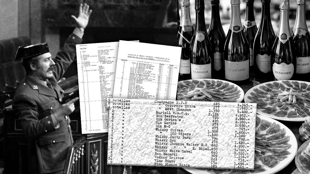 La factura de la cafetería del Congreso la noche del 23-F: 19 botellas de champán, ocho de anís, tres centros de jamón…
