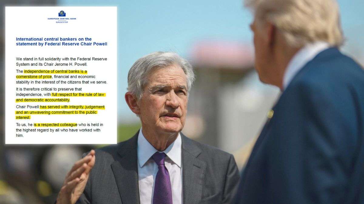 A través de un comunicado conjunto, aseguran que "la independencia de los bancos centrales" es fundamental y que Powell "ha servido con integridad y compromiso"...
