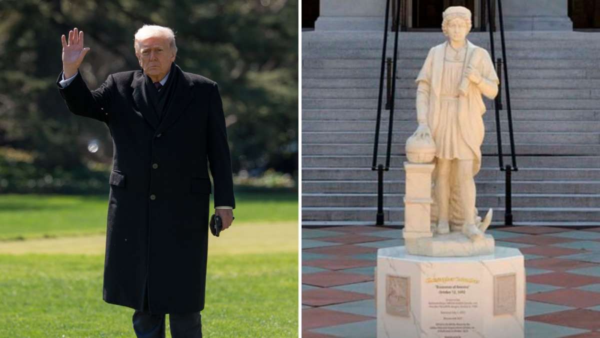 Trump instala en la Casa Blanca una estatua de Cristóbal Colón que fue vandalizada en el Black Lives Matter