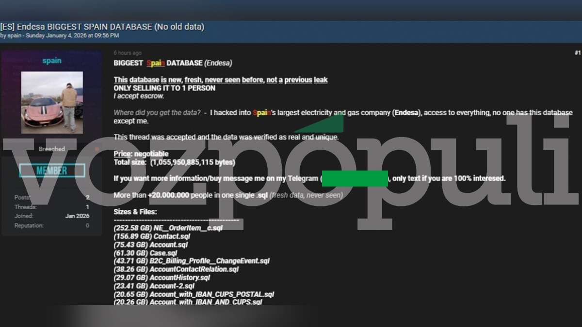 La base de datos está a la venta y contiene información sensible como datos personales, bancarios y de contratos de suministro...