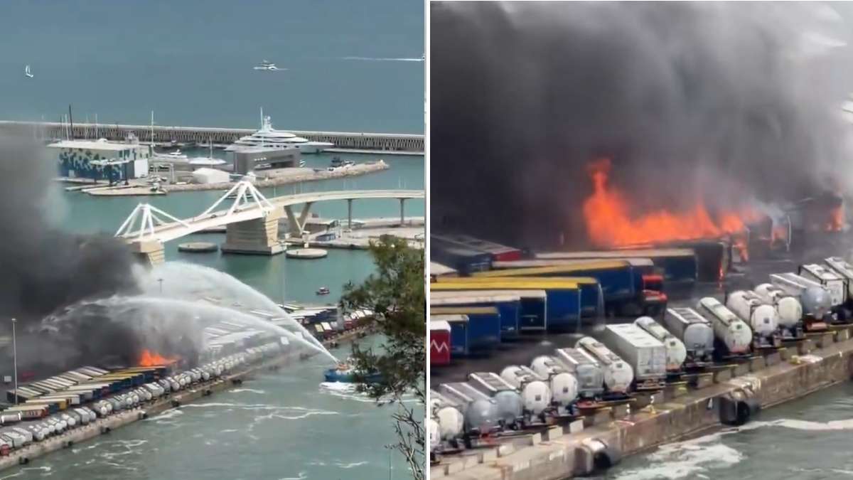 Un incendio en el Puerto de Barcelona quema varios contenedores de mercancías
