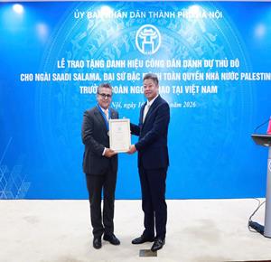 هانوي 16-1-2026 وفا- كرمت الجمهورية الفيتنامية، سفير دولة فلسطين لديها سعدي الطميزي، بمنحه مواطنة الشرف، تقديرا لإسهاماته في تعزيز علاقات الصداقة والتعاون بين البلدين، ولدوره في توطيد جسور التواصل الإنساني والثقافي بين الشعبين. جاء ذلك خلال حفل أقيم في مقر محافظة هانوي، بحضور نائب رئيس اللجنة الشعب...