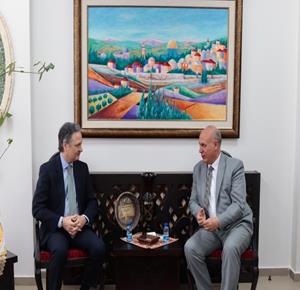 رام الله 9-4-2026 وفا- بحث وزير الثقافة عماد حمدان، اليوم الخميس، مع القنصل الإسباني المعتمد لدى دولة فلسطين، خافيير جوتيريز آفاق التعاون الثقافي المشترك وسبل تطوير العلاقات الثنائية. وأكد الطرفان خلال الاجتماع أهمية تعزيز التبادل الثقافي بين البلدين من خلال تنظيم فعاليات مشتركة، وتنفيذ برامج إبداع...