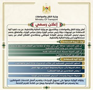 "المواصلات" تعلن بدء تنفيذ خصم رسوم الترخيص ورخص قيادة الموظفين والمتقاعدين من مستحقاتهم