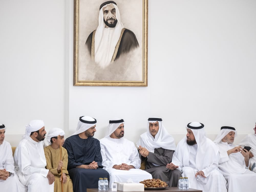 ذياب بن محمد بن زايد وزايد بن محمد بن زايد يقدمان واجب العزاء في وفاة حمد بن راشد الهاجري