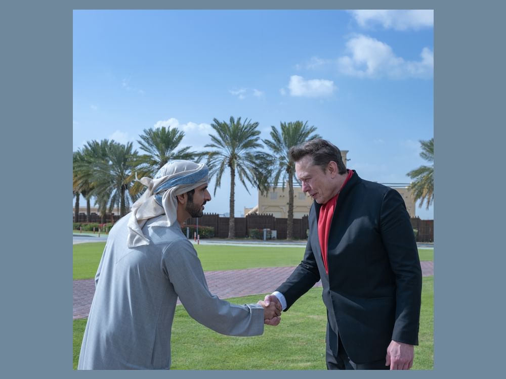 حمدان بن محمد يلتقي إيلون ماسك ويستعرض معه آفاق التطور التكنولوجي والذكاء الاصطناعي