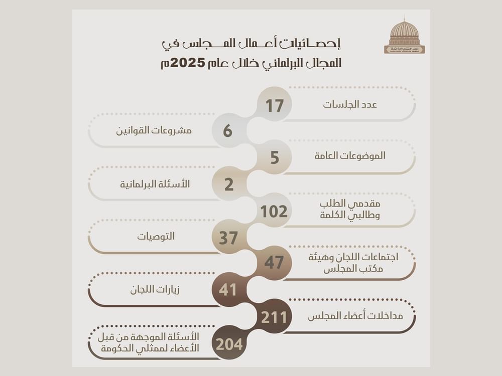 الشارقة في الأول من يناير / وام / رسخ المجلس الاستشاري لإمارة الشارقة خلال عام 2025م أداء دوره البرلماني والتشريعي والرقابي في إطار منظومة العمل المؤسسي التي تنتهجها الإمارة وبما يعكس رؤية صاحب السمو الشيخ الدكتور سلطان بن محمد القاسمي عضو المجلس الأعلى حاكم الشارقة في تعزيز المشاركة البرلمانية وتعز...