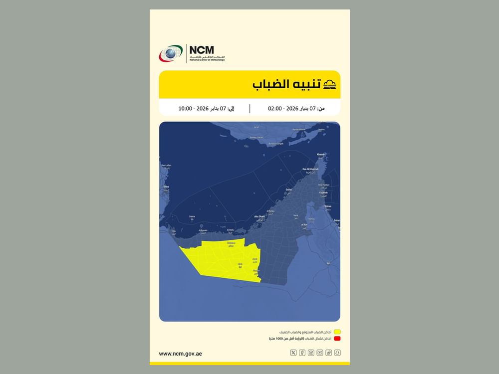 أبوظبي 7 يناير / وام / حذر المركز الوطني للأرصاد من فرصة تشكل الضباب وتدني مدى الرؤية الأفقية، وانعدامها أحيانا على بعض المناطق الداخلية من الدولة، وذلك من الساعة 02:00 فجرا وحتى الساعة 10:00 من صباح يوم الأربعاء. ودعا المركز السائقين إلى توخي الحيطة والحذر أثناء القيادة في هذه الفترة، واتباع إرشاد...