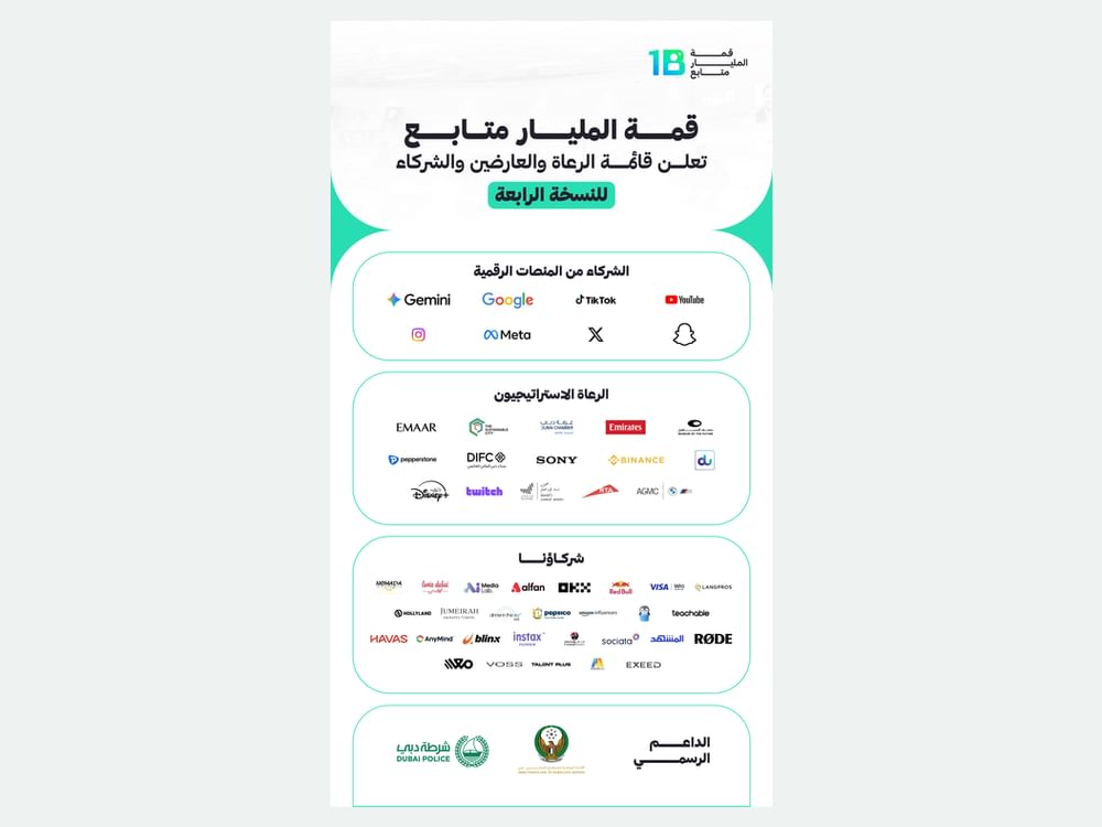 "قمة المليار متابع" تعلن قائمة الرعاة والعارضين والشركاء للنسخة الرابعة