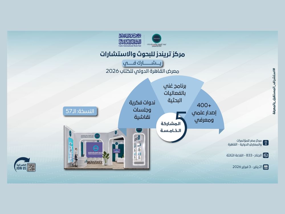 "تريندز" يشارك في معرض القاهرة للكتاب بـ400 إصدار بحثي ومعرفي