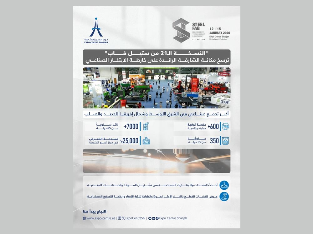 "ستيل فاب 2026" ينطلق غداً في "إكسبو الشارقة" بمشاركة 600 علامة تجارية