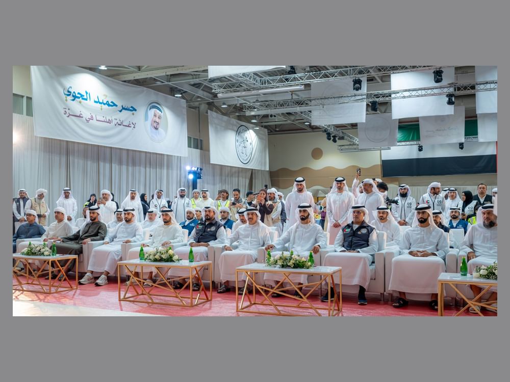 حميد وراشد بن عمار والمتطوعون يشاركون في تجهيز طرود "جسر حميد الجوي" دعما لقطاع غزة