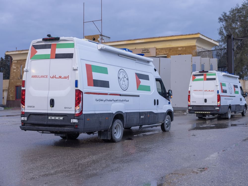 قوافل الإمارات إلى غزة تتواصل / إدخال 7 سيارات إسعاف وصهريج مياه ومساعدات طبية وغذائية ضمن "الفارس الشهم 3"